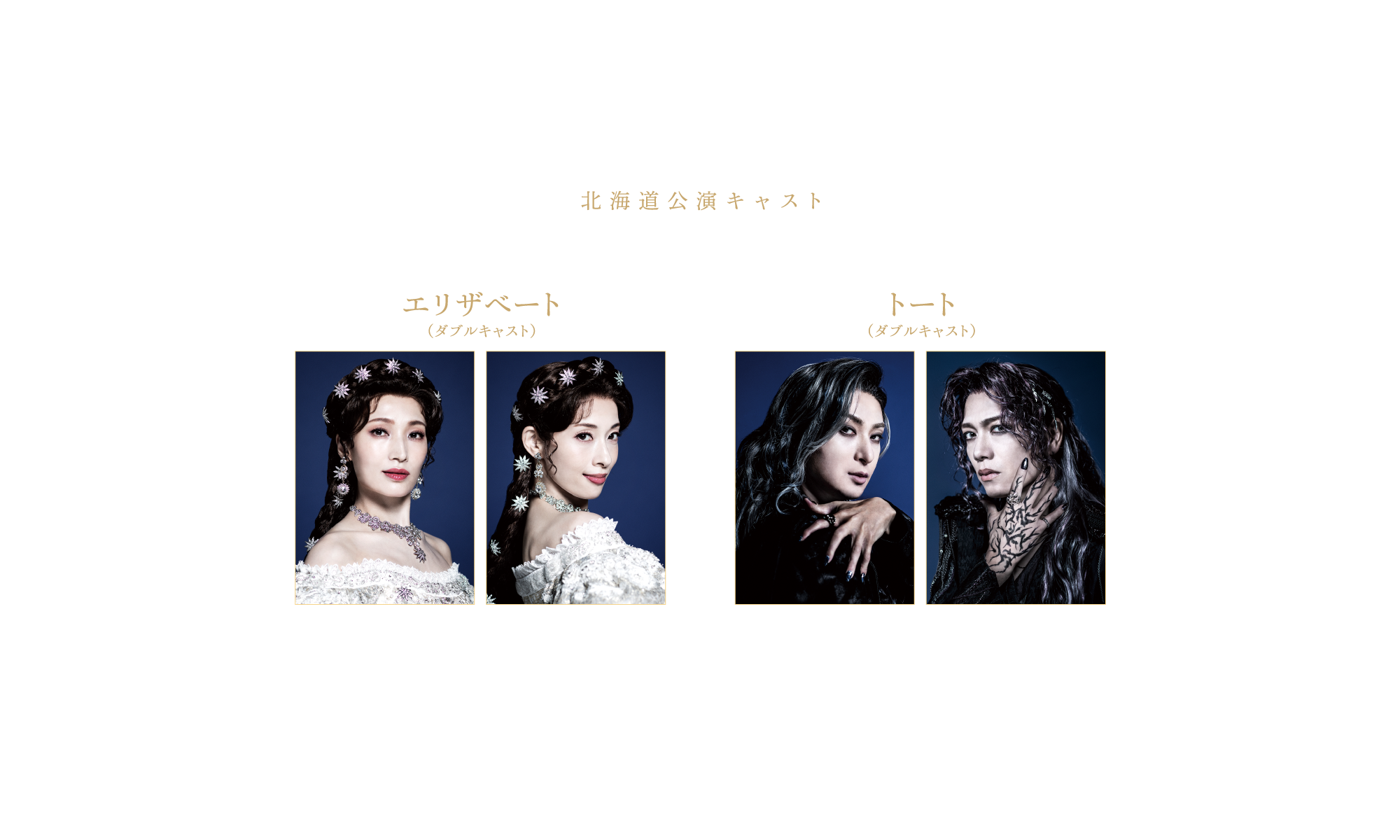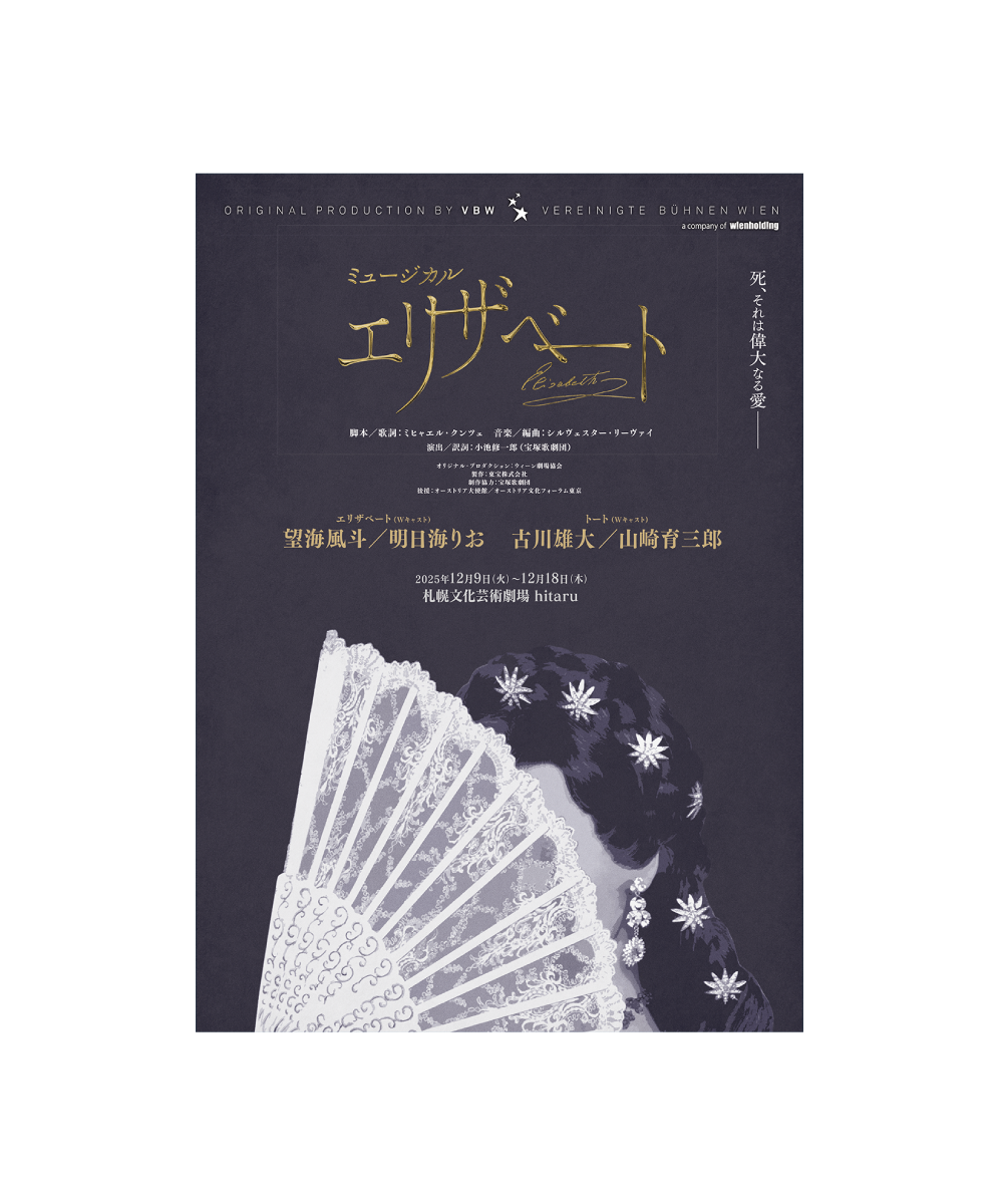 自由を愛し、類なき美貌を誇ったハプスブルク帝国最後の皇后エリザベートと、彼女を愛した黄泉の帝王“トート=死”。トートはエリザベートが少女の頃から彼女の愛を求め続け、彼女もいつしかトートの愛を意識するようになる。しかし、その禁じられた愛を受け入れることは、自らの死を意味した。滅亡の帳がおりる帝国と共にエリザベートに“運命の日”が訪れる―。1996年に宝塚歌劇団により日本初演、2000年の東宝版初演から25年にわたって観る者を魅了し続けてきた大ヒットミュージカル『エリザベート』の北海道公演が実現! エリザベート役の望海風斗氏と明日海りお氏、トート役の古川雄大氏、山崎育三郎氏をはじめ、最高のキャストとクリエイター陣が贈る新たな『エリザベート』の物語を、ぜひhitaruでご覧ください。