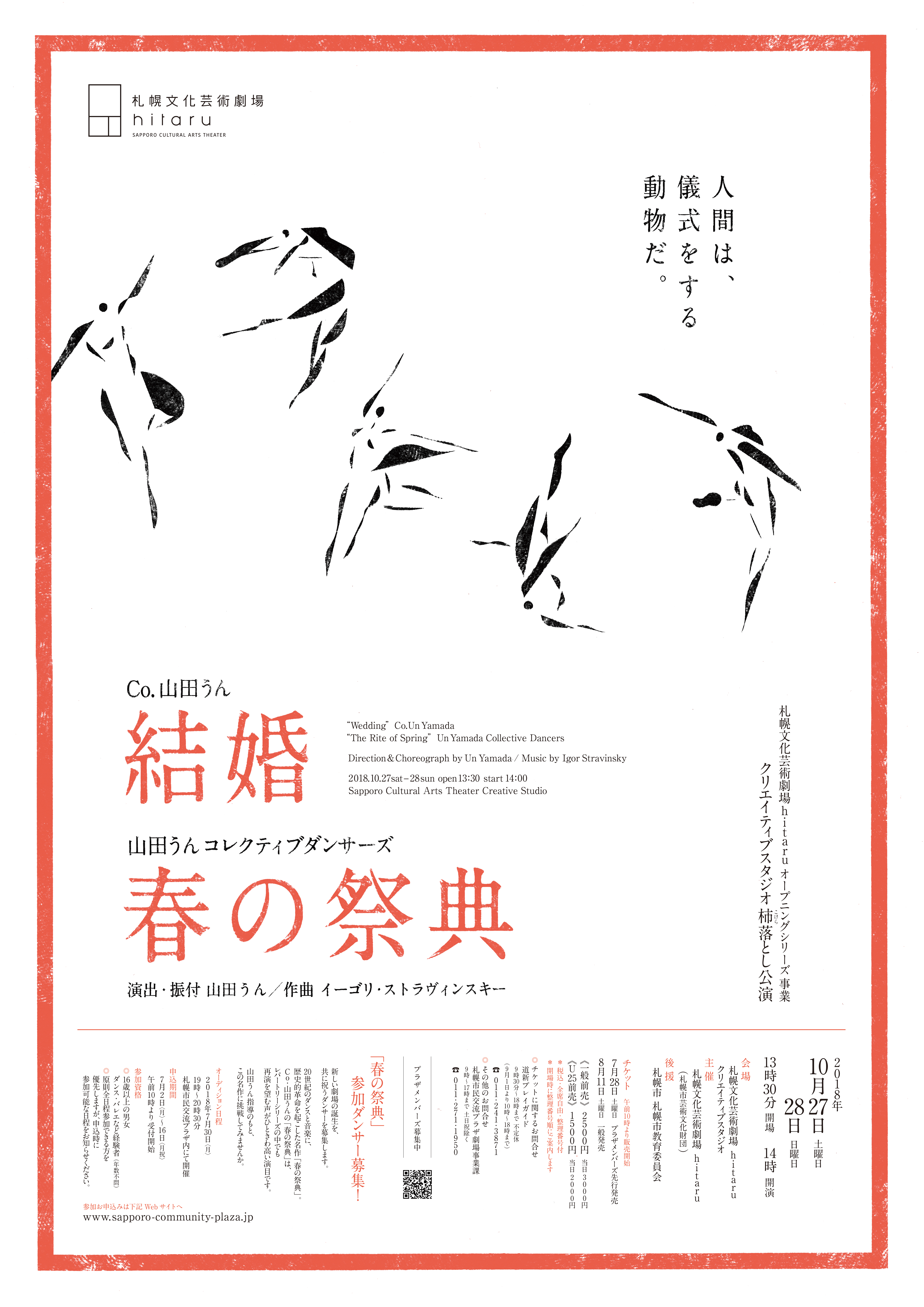 Co.山田うんのレパートリー作品「結婚」と、オーディションで選ばれたダンサーたちによる「春の祭典」を上演します。