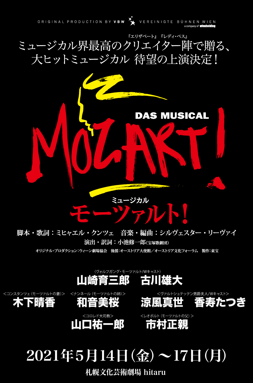 若き才能と日本ミュージカル界のレジェンドたちが織りなす、ウィーン・ミュージカルの最高峰「モーツァルト!」を札幌文化芸術劇場 hitaruで上演します。