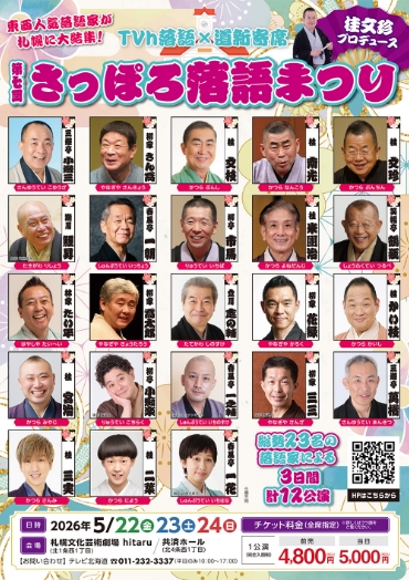 オープン以来継続して開催しているさっぽろ落語まつりの第7回公演、東西の人気落語家が札幌に集結。札幌文化芸術劇場 hitaruと共済ホールの2会場で開催します。