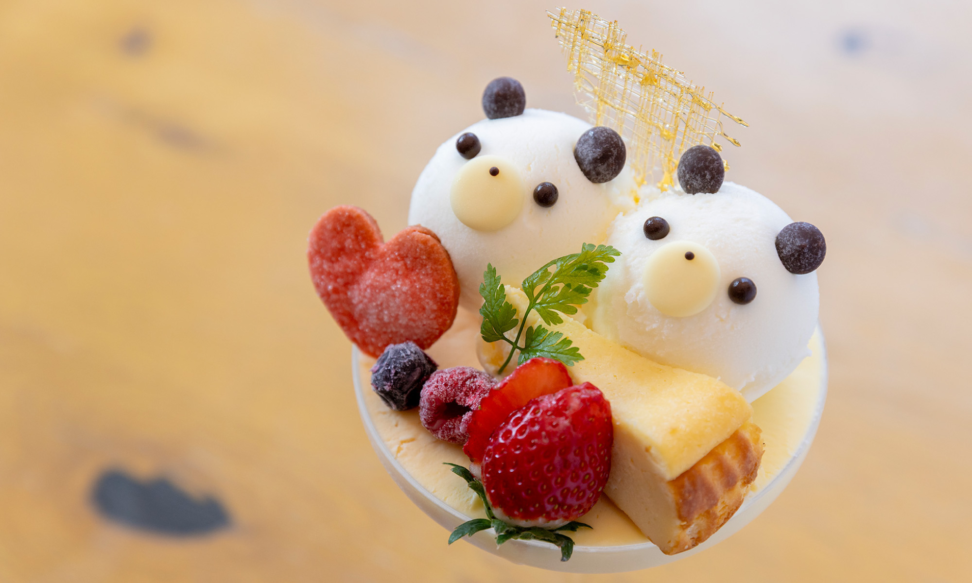 長沼町の人気店「あいすの家」から仕入れる、道産生乳100%の16種のジェラートをメインとしたパフェを提供。パーツのクッキーや飴細工は手作りで、3種のミルクジェラートを使う「白いパフェ」(1,540円)やキュートな見た目の「しろくまパフェ」など、多彩なメニューがそろう。